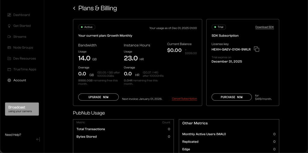 An updated UI now makes it easier to track your usage inside Red5 Cloud. The updated report provides clearer visibility into consumption so you can monitor your workloads and stay in control of your costs.